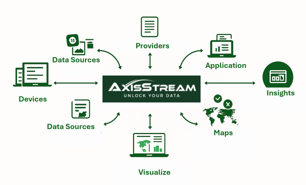 AxisStream is AxisTech’s data management platform. It brings together information from devices, farm systems, and partner software into one structured view so users can see what is happening on farm and across the business clearly and consistently.