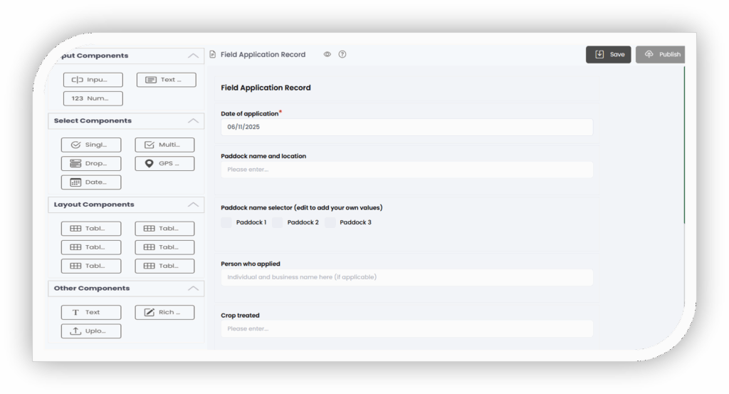 Digitise daily operations with customised forms for rainfall, tank runs, safety checks, and other on-farm tasks — reducing paperwork and improving accuracy.