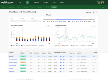 Monitoring and device data in one place: Clients can capture and manage data from on-farm monitoring devices including weather, soil and water where data can be viewed in relevant dashboards.