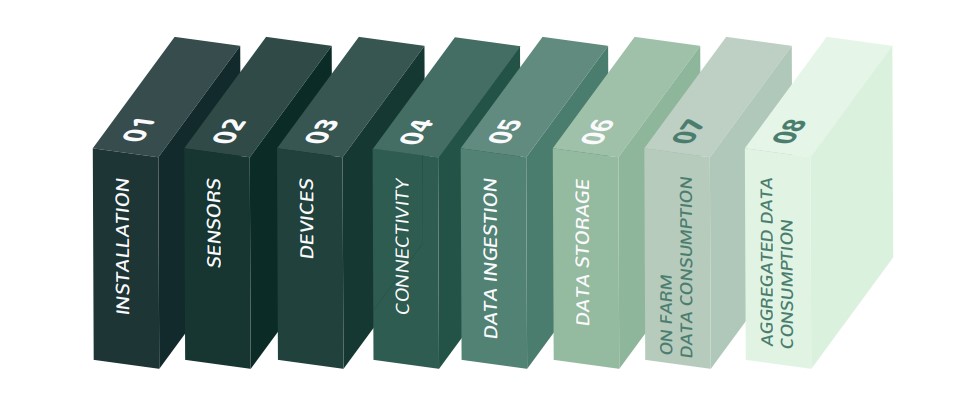 Our founder, Wes Lawrence, in collaboration with Belinda Lay of Coolindown Farms, and of other fame, have arrived at an 8 Pillar framework that deconstructs solutions into their fundamental elements, or pillars. These 8 Pillars are based on their combined experience and learnings of IoT and other AgTech and create the foundation that each pillar is built on.